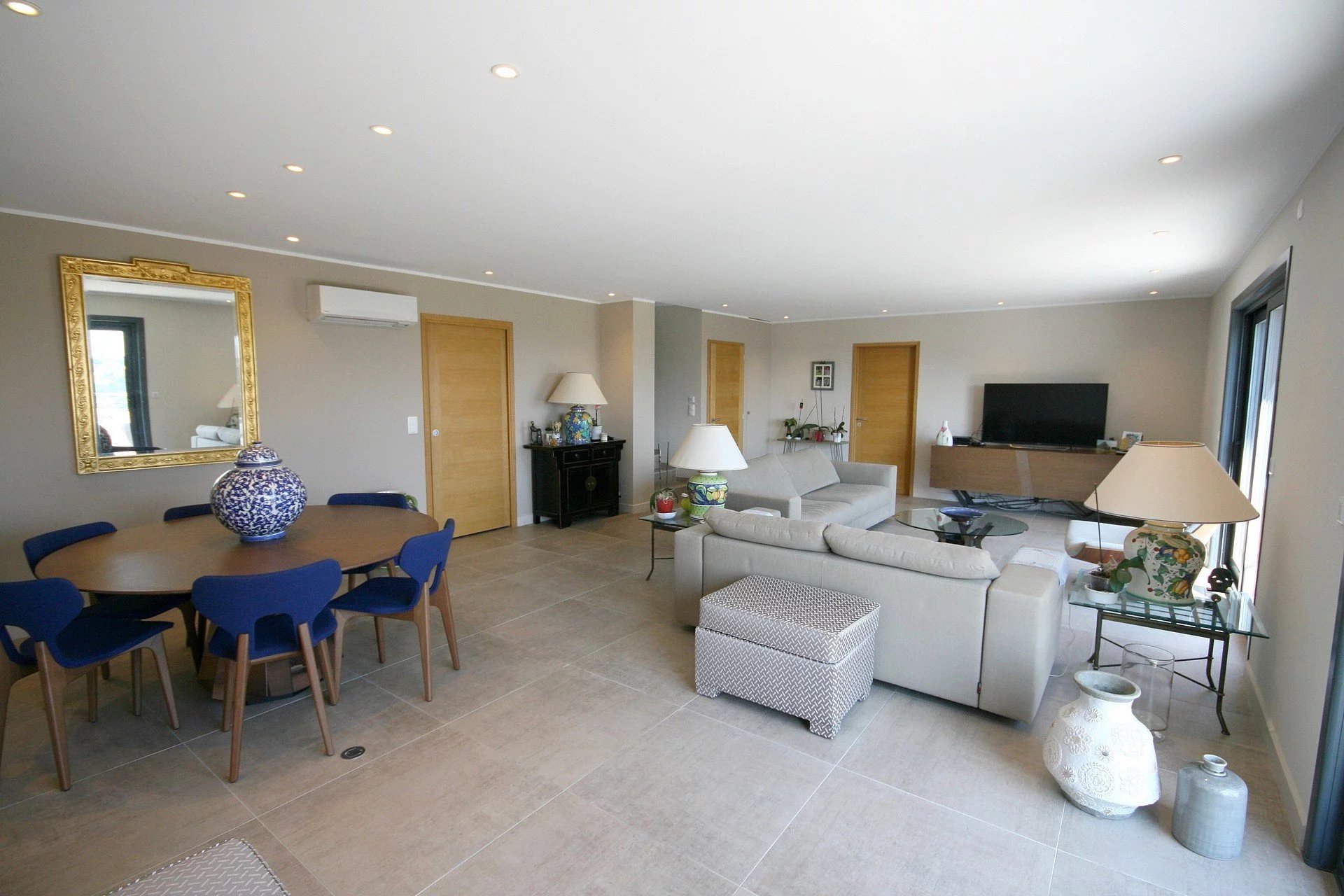 Bénéficiant de belles vues dégagées sur la campagne environnante et la mer, magnifique propriété construite en 2015, offrant des prestations de qualité : beau salon, salle à manger ouvrant sur spacieuse terrasse, cuisine équipée et arrière cuisine avec accès indépendant, 4 chambres avec salles de bains/douches, vaste sous-sol.